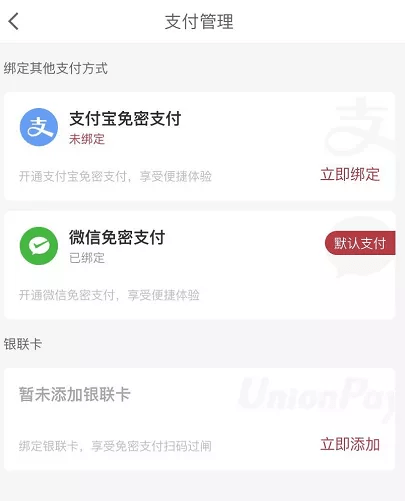 用户必须在支付管理页面绑定支付方式,才能扫码购票或购买包月票,目前暂支持绑定微信、支付宝以及银联卡。