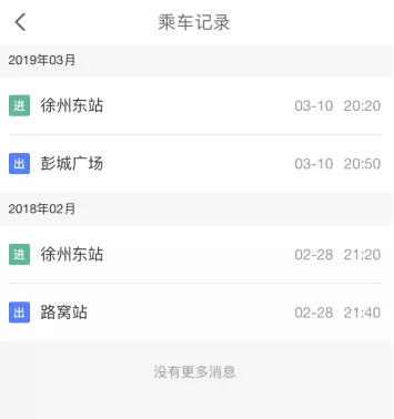 该功能主要记录用户进出闸时的具体信息,用户可在此查看以往的乘车记录。