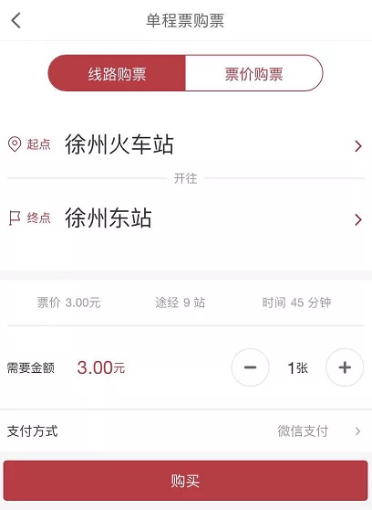 用户在此页面可以进行单程票的购买,并在任意站点使用APP扫描自动售票机上的二维码,完成取票进站,避免排队的苦恼。
